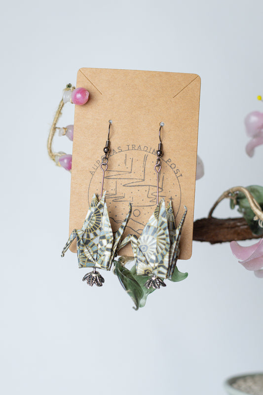 Mosaic Origami Crane Earrings