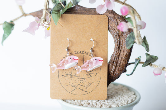 Pink Spotted Whale Dangle Earrings
