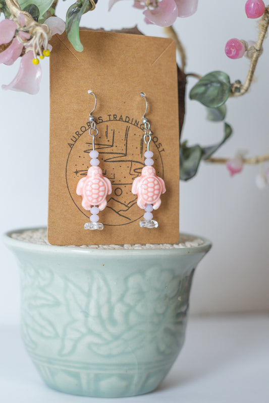 Pink Turtle Beaded Earrings