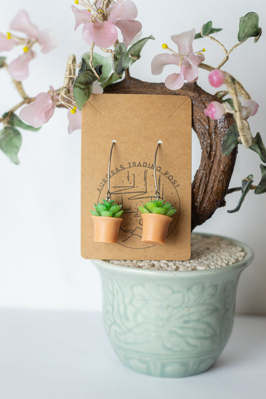Green Fern Potted Plant Earrings