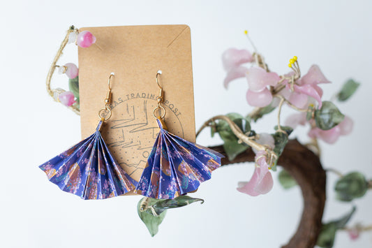 Purple & Gold Origami Fan Earrings